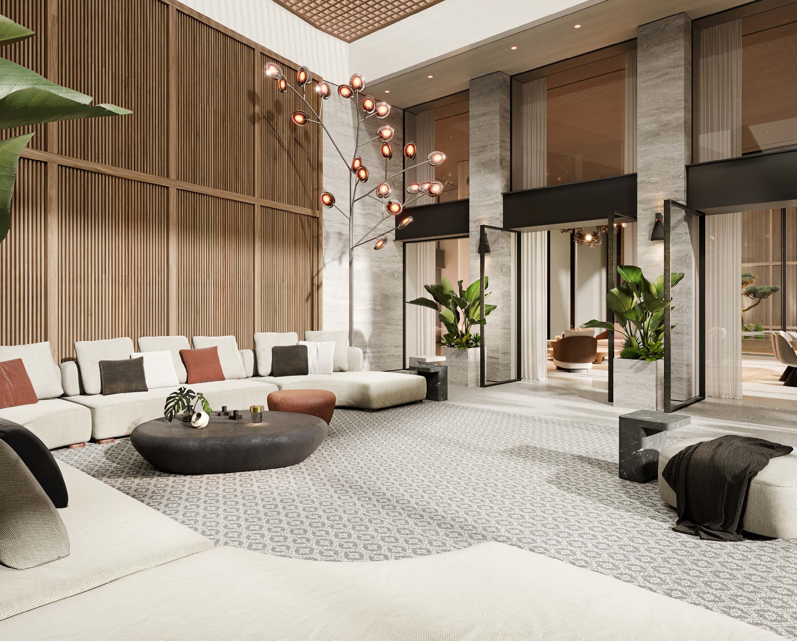 Lobby and lounge for residences as well as hotel