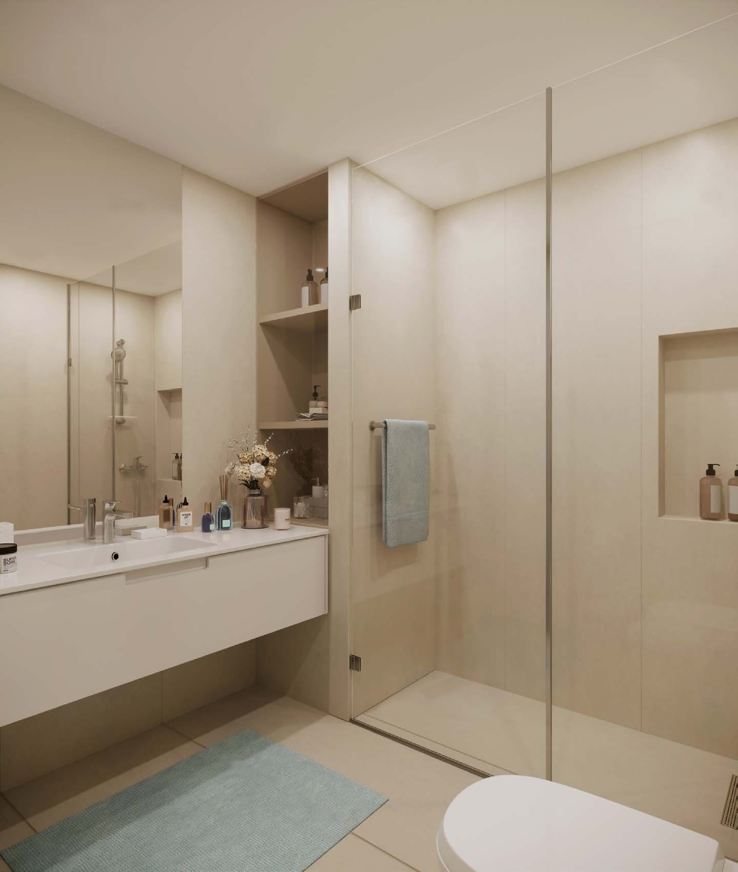 - アパートのインテリア デザインは、建物の外観の素晴らしさにマッチしており、お客様の楽しみをさらに高める仕上げの工夫が随所に施されています。モダンなバスルームは、作り付けの棚、広々とした引き出しやキャビネット、シャワーを囲む磨き上げられたタイルに至るまで、毎日の使用に配慮した配慮が反映されています。